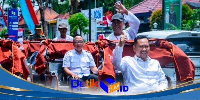 Gresik || Detik24jam.id – Bupati Gresik Fandi Akhmad Yani secara simbolis menyerahkan bantuan 200 unit becak listrik kepada para pembecak lanjut
