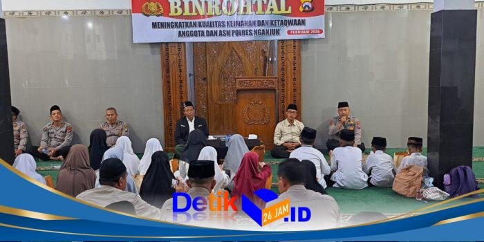 Nganjuk || Detik24jam.id – Polres Nganjuk menggelar kegiatan Pembinaan Rohani dan Mental (Binrohtal) di Masjid Al Ikhlas Polres Nganjuk sebagai upaya