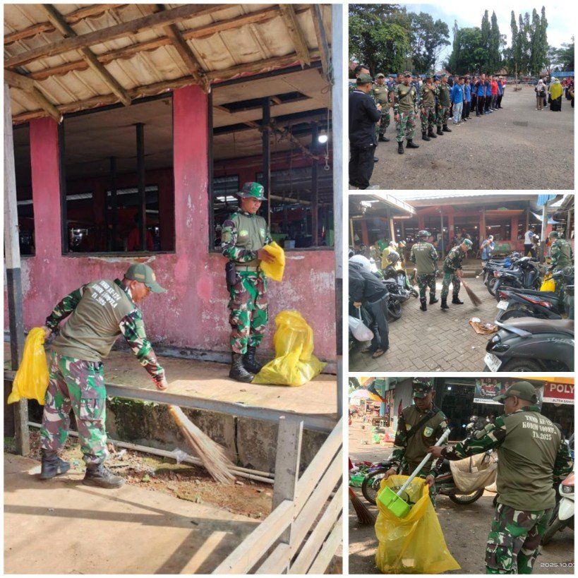Pelaihari – Sebagai bentuk dukungan dalam kegiatan Aksi Bersih World Cleanup Day Indonesia 2025, Kodim 1009/Tanah Laut terjunkan Personelnya untuk melaksanakan kegiatan karya bakti di Pasar Tapandang Berseri, Sabtu (04/10/2025).