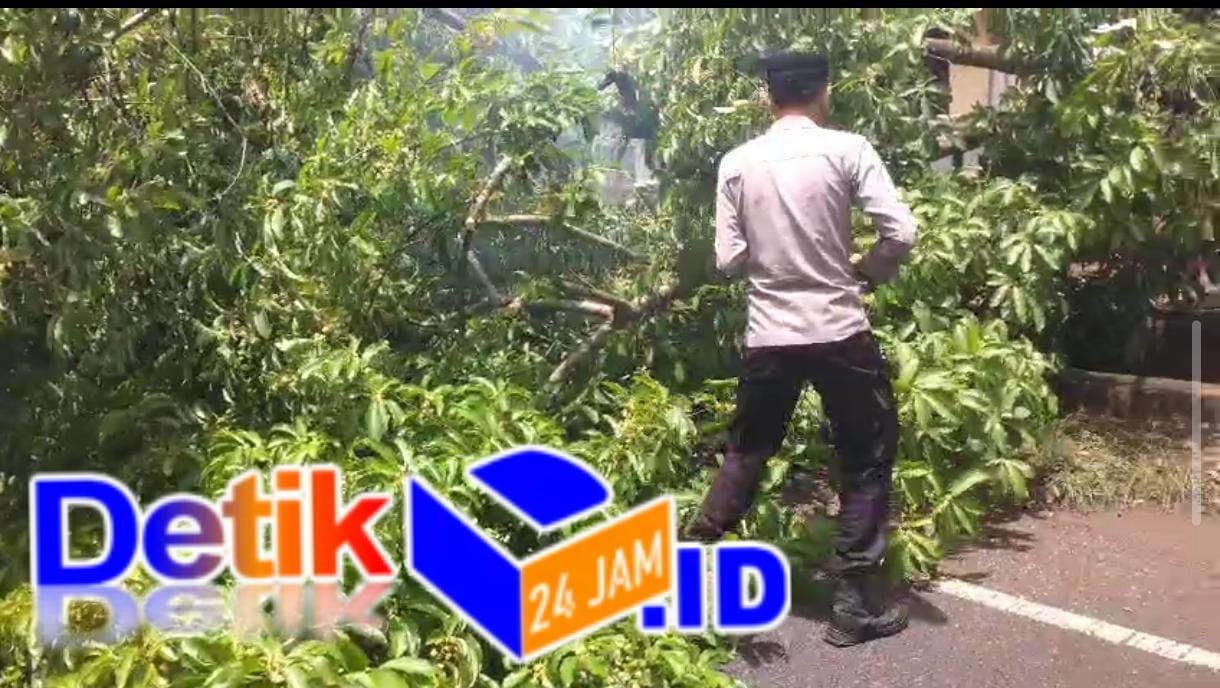 SUMENEP || Detik24jam.id – Sebagai bentuk implementasi Program Prioritas Kapolri Presisi (Prediktif, Responsibilitas, Transparansi dan Berkeadilan), Polres Sumenep melalui Polsek Lenteng bergerak cepat melakukan langkah tanggap bencana setelah menerima laporan adanya dua titik pohon tumbang yang menghalangi akses jalan di wilayah Kecamatan Lenteng, Senin (03/11/2022).