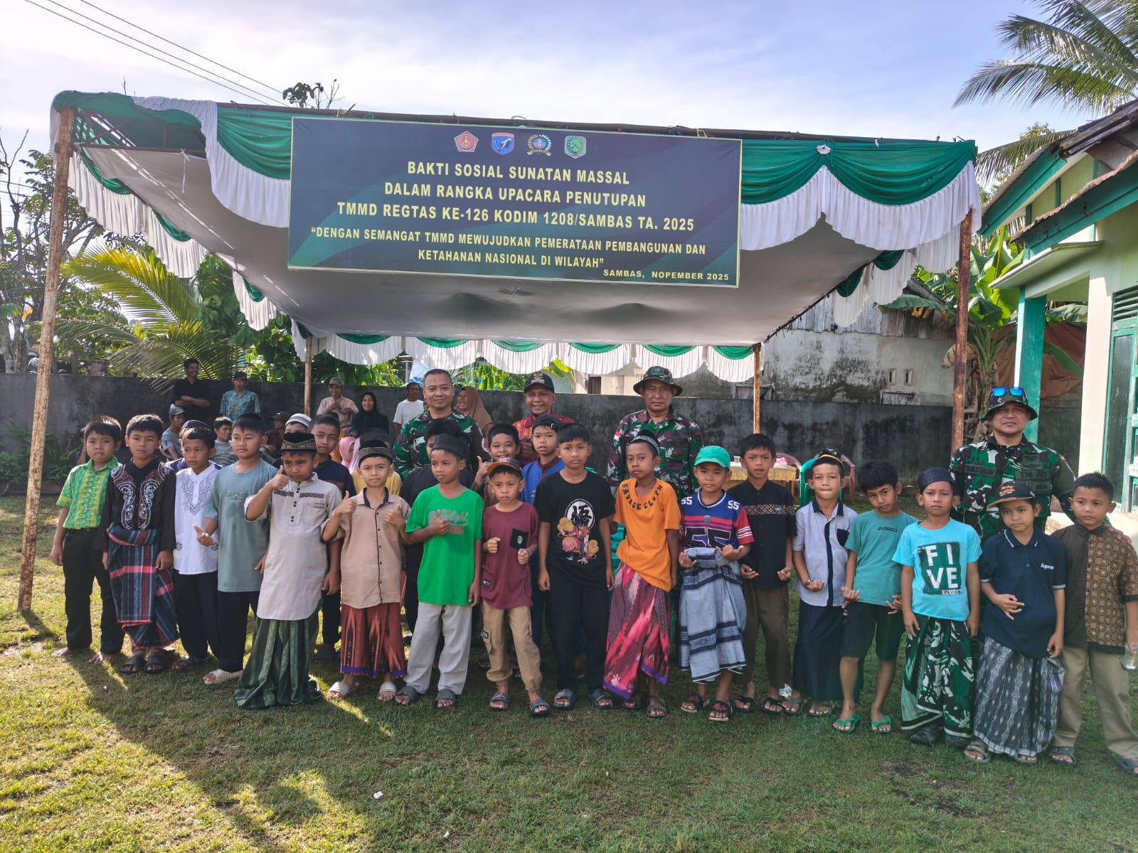 Sambas – Danrem 121/Abw Brigjen TNI Purnomosidi, S.I.P., M.A.P., M.Han., secara resmi menutup TMMD Regtas ke-126 tahun 2025 Kodim 1208/Sambas, bertempat di Lapangan bola Desa. Ratu Sepudak, Kec. Galing, Kab. Sambas, Kalimantan Barat, Kamis (06/11/2025).