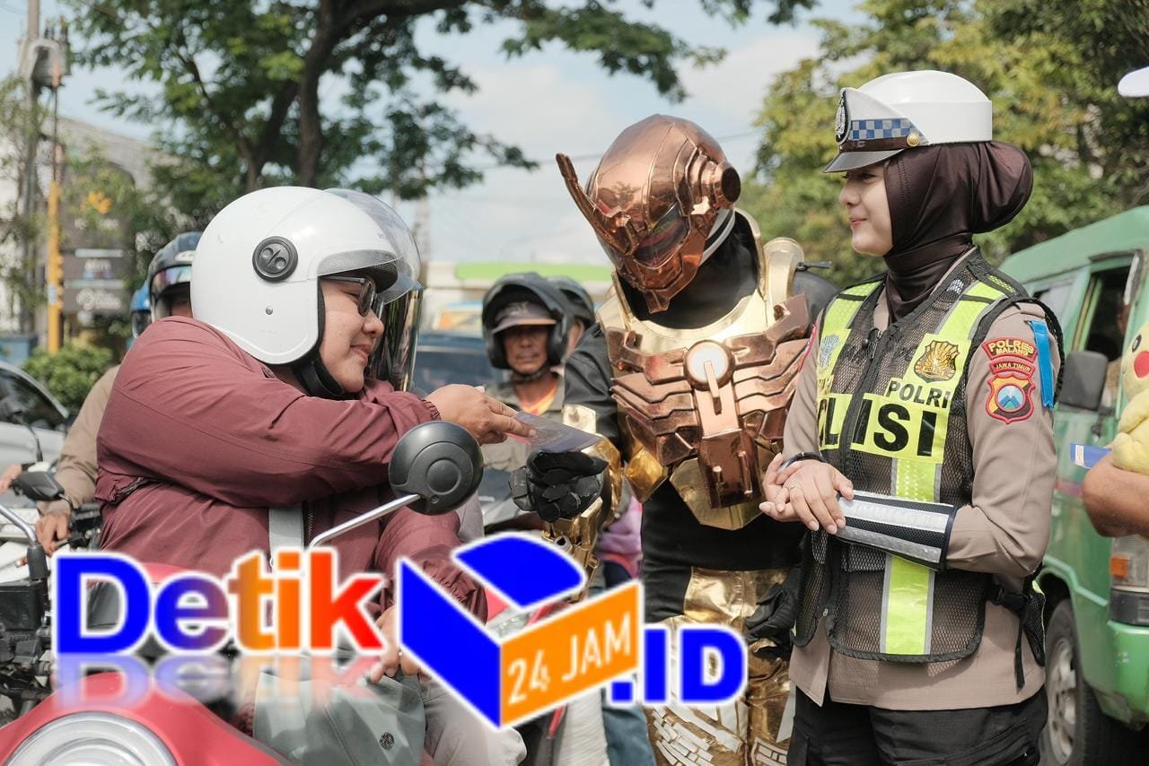 Bukan sekadar penindakan dan teguran, kali ini Polisi turun ke jalan dengan tampilan berbeda: mengenakan kostum super hero.