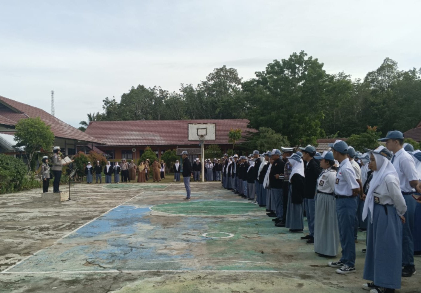 Kegiatan ini dilaksanakan dalam rangkaian upacara bendera Merah Putih, dengan Kasat Lantas Polres Pulang Pisau IPTU Divani Mareta Astuti, S.Tr.K., sebagai pembina upacara. Di hadapan seluruh peserta didik, IPTU Divani menyampaikan pentingnya menanamkan kedisiplinan sejak dini, menjauhi pergaulan negatif, dan menghindari kenakalan remaja yang dapat merusak masa depan.