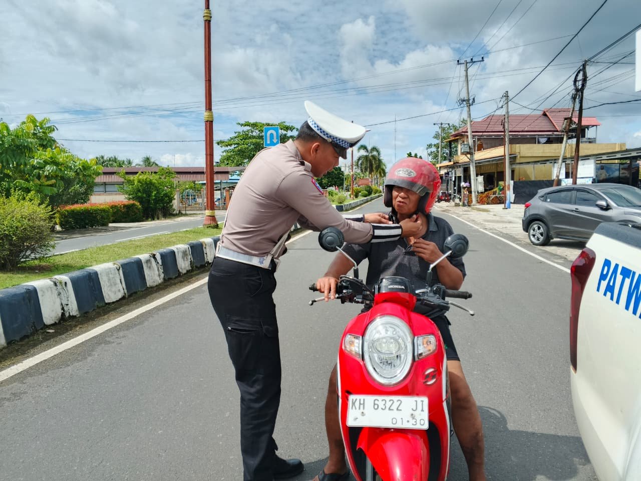 mengatakan pengendara yang tidak meng-klik helm diberikan teguran oleh personel Satlantas.