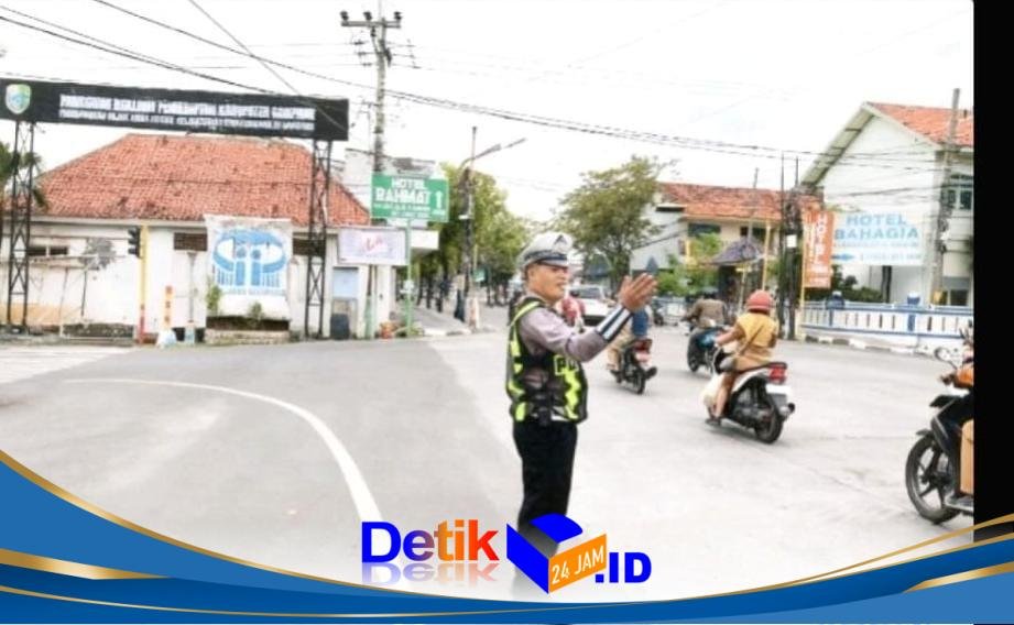 Personel Satlantas Polres Sampang tidak hanya sekadar berjaga, namun berdiri langsung di tengah persimpangan untuk melakukan pengaturan manual.