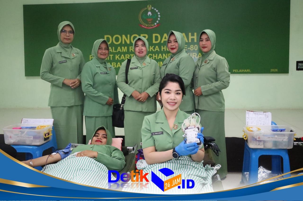 Pelaihari – Dalam rangka menyambut Hari Ulang Tahun (HUT) Persit Kartika Chandra Kirana yang ke-80, Persit KCK Cabang XXXII Dim 1009 Koorcab Rem 101 PD XXII/Tambun Bungai menggelar kegiatan bakti sosial donor darah yang dilaksanakan di Aula Parikesit Makodim 1009/Tanah Laut, Rabu (04/02/2026.