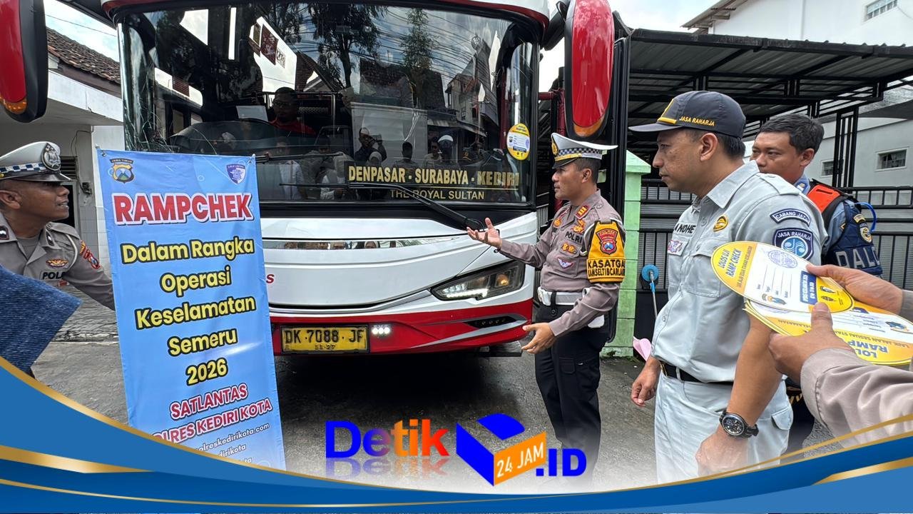 Kediri Kota || Detik24jam.id – Satuan Lalu Lintas Polres Kediri Kota bersama instansi terkait melaksanakan kegiatan rampcheck kendaraan angkutan umum di Terminal Tamanan, Kecamatan Mojoroto, Kota Kediri, pada Jumat (6/2/2026) pagi. Kegiatan ini dilaksanakan dalam rangka mendukung pelaksanaan Operasi Lilin Semeru 2025 guna memastikan keselamatan dan kelayakan angkutan umum.