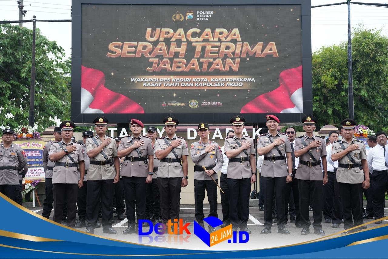 Kediri Kota || Detik24jam.id – Serah terima jabatan (sertijab) sejumlah pejabat utama Polres Kediri Kota menjadi momentum penting dalam dinamika organisasi Polri. Rotasi yang tertuang dalam keputusan pimpinan Polri Desember 2025 ini menandai promosi dan penugasan ke tingkat yang lebih tinggi bagi Wakapolres dan Kasatreskrim Polres Kediri Kota.