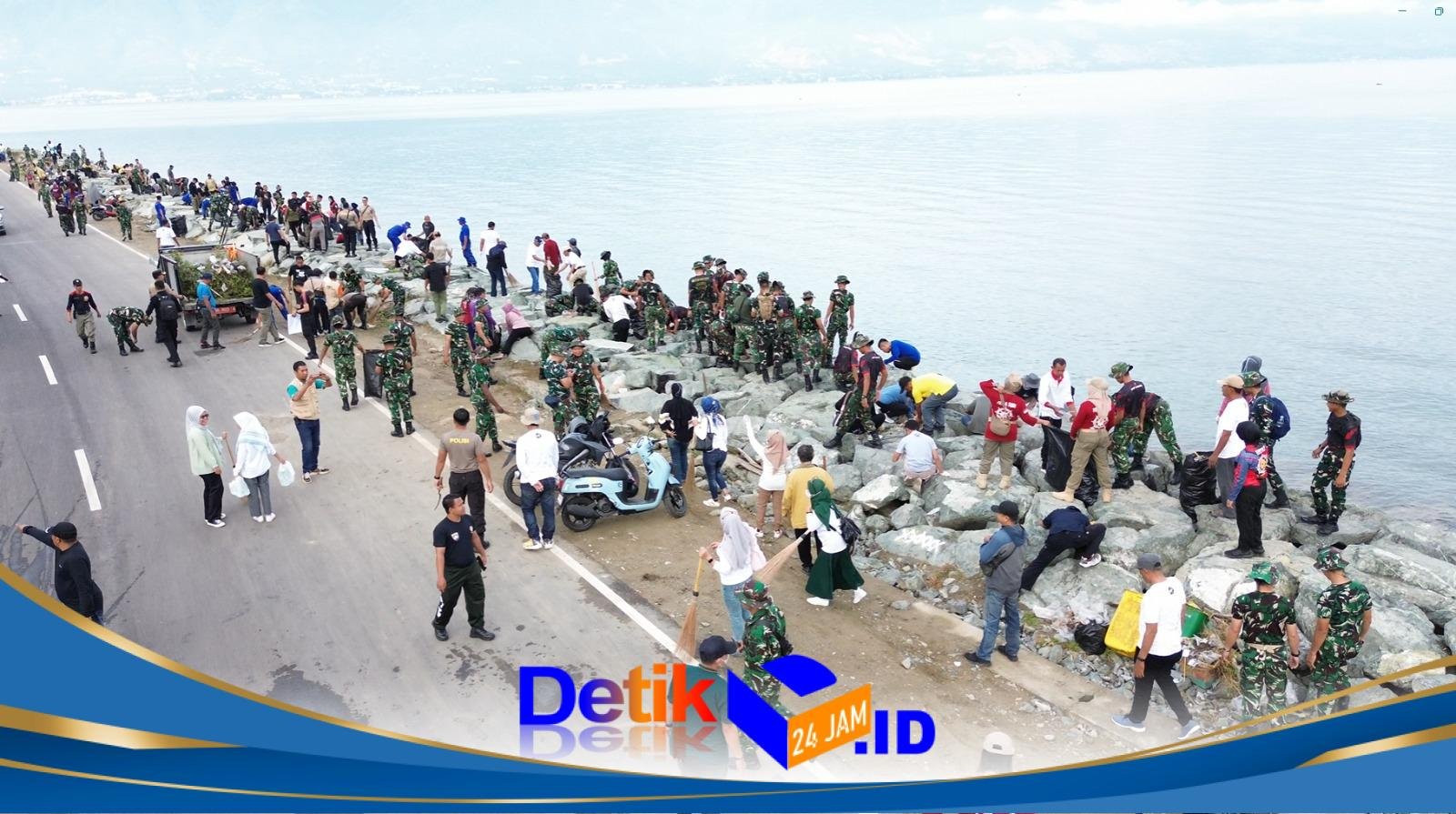 Kegiatan tersebut melibatkan personel TNI, Polri, aparat pemerintah setempat, serta masyarakat sekitar sebagai wujud sinergitas dan kepedulian bersama terhadap kebersihan lingkungan.