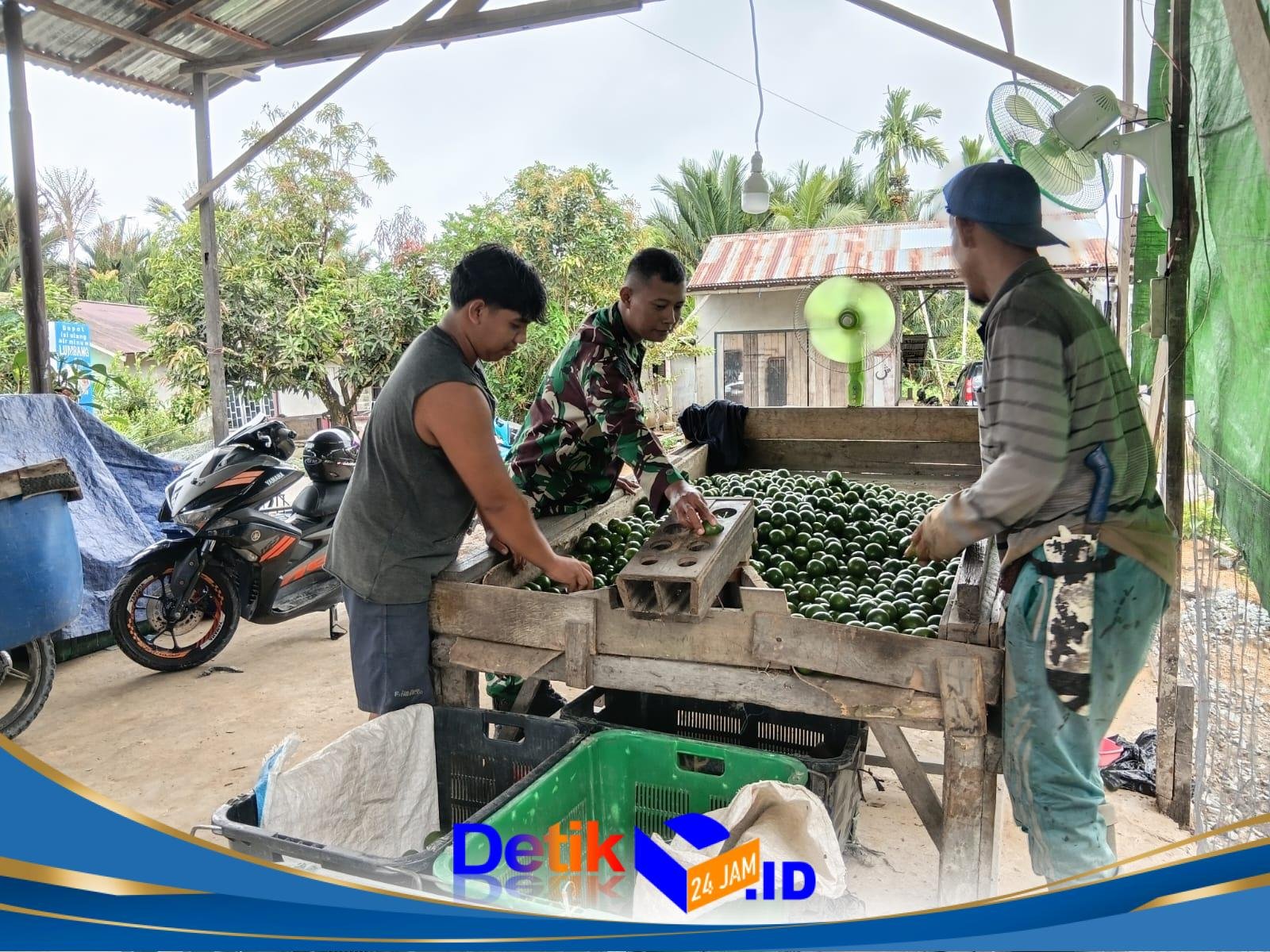 Kegiatan komsos tersebut dilaksanakan di tempat penampungan jeruk milik warga, di mana Babinsa berbaur langsung dengan para petani sembari berdialog santai membahas perkembangan tanaman, kendala yang dihadapi, serta upaya meningkatkan hasil panen.