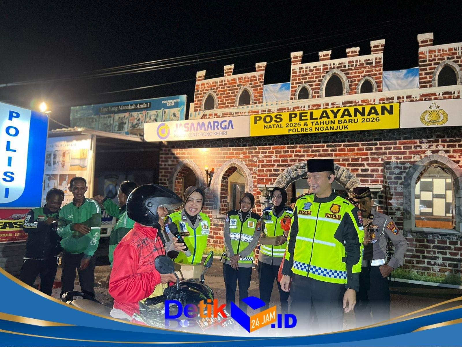 Nganjuk || Detik24jam.id – Suasana penuh kehangatan terasa di Pos 12.0 Pujahito Satlantas Polres Nganjuk saat jajaran Satlantas menggelar sahur bersama komunitas ojek pangkalan dan ojek online (ojol), Senin (23/2/2026). Kegiatan ini merupakan bagian dari program Polantas Menyapa, yang bertujuan mempererat silaturahmi sekaligus menyampaikan pesan keselamatan berlalu lintas secara humanis.
