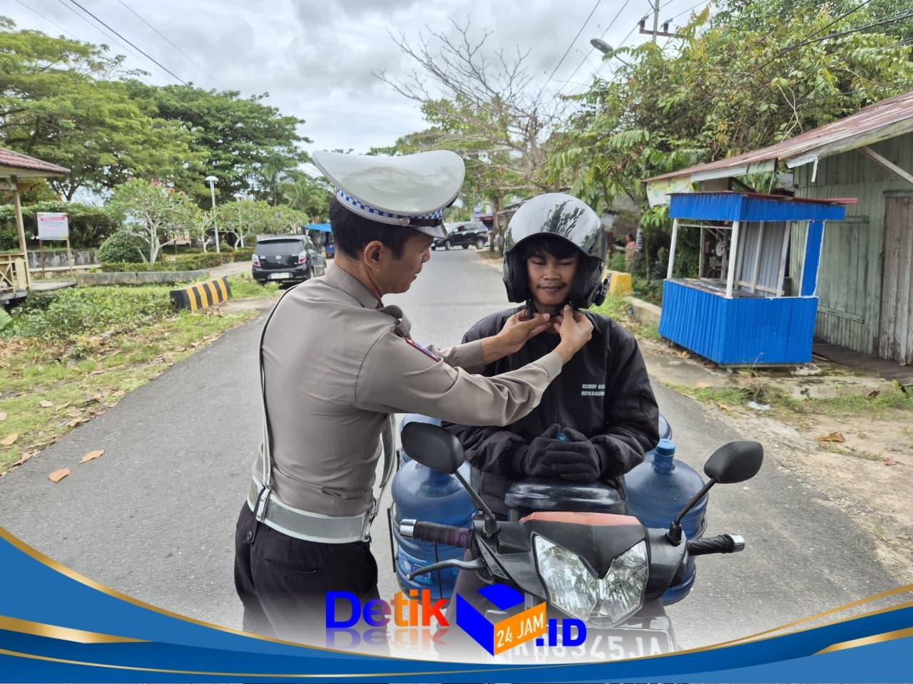 Polres Pulang Pisau – Satuan Lalu Lintas – Satlantas Polres Pulang Pisau Sebagai upaya menciptakan Kamseltibcarlantas, Satlantas Polres Pulang Pisau laksanakan edukasi tertib berlalu lintas serta ingatkan pengendara untuk selalu klik Helm saat berkendara, Selasa (24/2/2026) pukul 07.00 WIB.pagi.