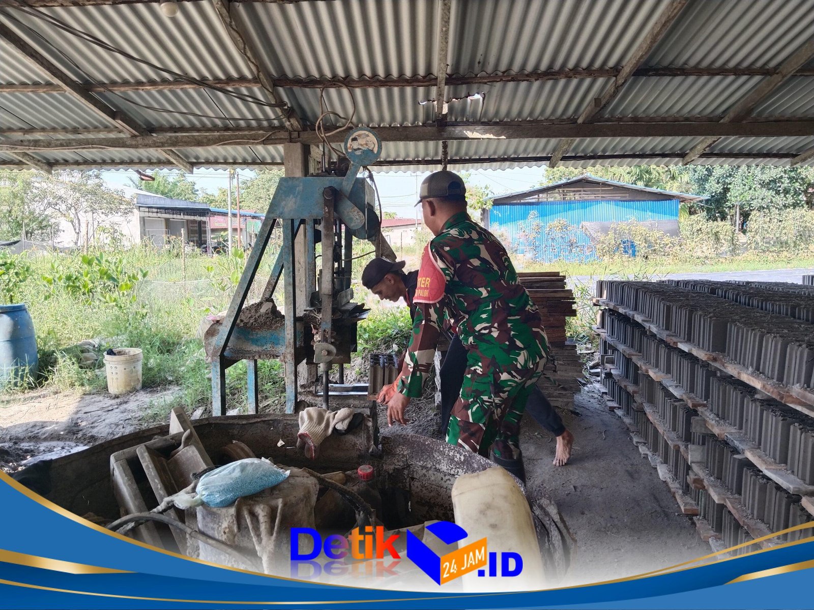 Kegiatan Komsos tersebut dilakukan dengan mengunjungi langsung tempat produksi batako milik warga. Dalam kesempatan itu, Babinsa berbincang santai sembari melihat proses pembuatan batako yang menjadi salah satu sumber mata pencaharian masyarakat setempat.