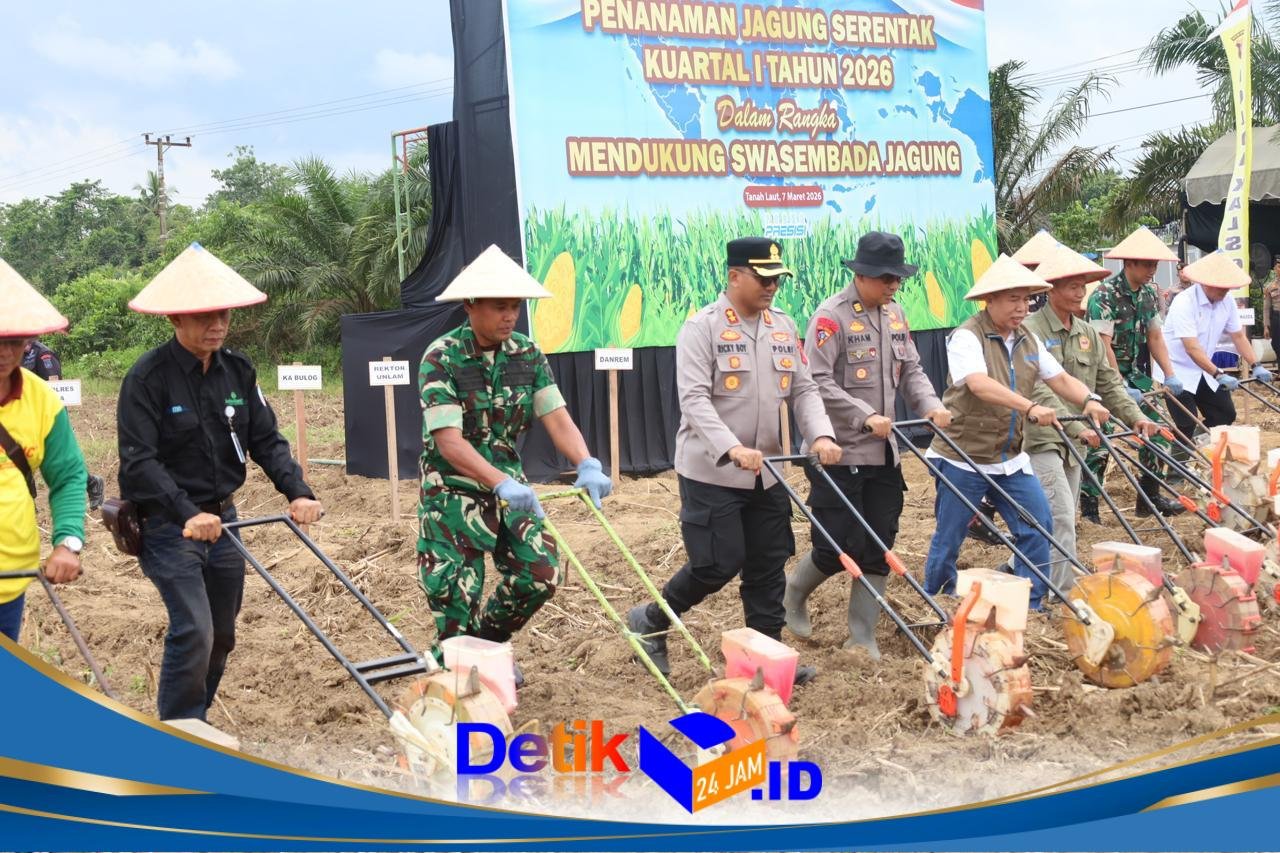 Tanah Laut – Komandan Distrik Militer (Dandim) 1009/Tanah Laut Letkol Inf Adhy Irawan, S.I.P., M.H.I., yang diwakili oleh Kepala Staf Kodim (Kasdim) Mayor Inf Sarjito menghadiri kegiatan Penanaman Jagung Serentak Kuartal I Tahun 2026 yang digelar oleh Polres Tanah Laut di Desa Bentok Darat, Kecamatan Bati-Bati, Kabupaten Tanah Laut, Sabtu (07/03/2026).