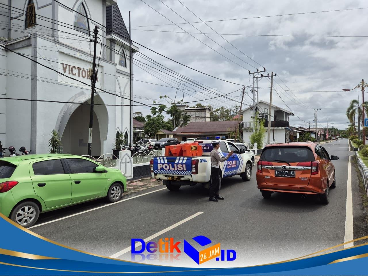 POLRES PULANG PISAU – Satuan Lalu Lintas – Personel Satuan Lalu Lintas (Satlantas) Polres Pulang Pisau melaksanakan kegiatan penjagaan dan pengaturan arus lalu lintas di sekitar Gereja Victoria, Minggu (8/03). Kegiatan ini dilakukan guna menjamin keamanan, keselamatan, ketertiban, dan kelancaran lalu lintas (Kamseltibcarlantas) bagi jemaat yang melaksanakan ibadah.