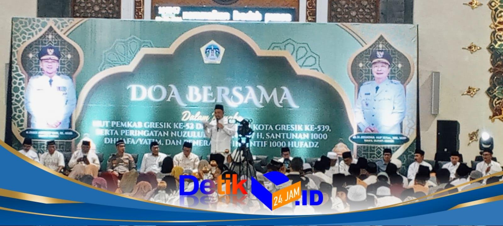 Gresik || Detik24jam.id – Pemerintah Kabupaten Gresik menggelar kegiatan Doa Bersama dalam rangka memperingati Hari Ulang Tahun ke-52 Pemerintah Kabupaten Gresik dan Hari Jadi ke-539 Kota Gresik yang dirangkai dengan peringatan Nuzulul Qur’an 1447 Hijriah. Kegiatan religius tersebut berlangsung khidmat dengan dihadiri unsur Forkopimda, tokoh agama, tokoh masyarakat, serta ratusan undangan lainnya.