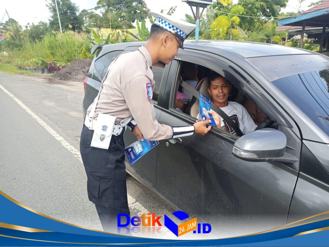Polres Pulang Pisau – Satuan Lalu Lintas – Untuk meningkatkan kesadaran dan kedisiplinan masyarakat,personil Satlantas Polres Pulang Pisau turun langsung membagikan brosur himbauan Keamanan Keselamatan Ketertiban dan kelancaran Lalulintas (Kamseltibcarlantas) Senin (9/3/2026) pukul 08.30 WIB