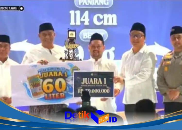 Gresik || Detik24jam.id — Juara 1 Kontes Bandeng Kawak Gresik 2026 kembali diraih Syaifullah Mahdi, Kepala Desa Pangkah Wetan, Kecamatan Ujungpangkah, Kabupaten Gresik dengan berat 19 kg dan panjang 114 cm.
