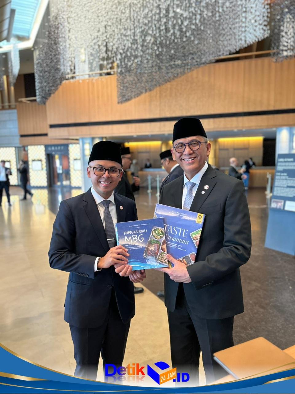 “Hari ini saya memberikan buku Taste of Nusantara dan Pangan Biru MBG kepada Duta Besar Republik Indonesia untuk Korea Selatan, Bapak Cecep. Bapak Cecep merupakan duta besar yang sangat menaruh perhatian terhadap pelaksanaan program MBG, terutama dalam hal apa saja yang dapat kita pelajari dari implementasi MBG di Korea Selatan.”