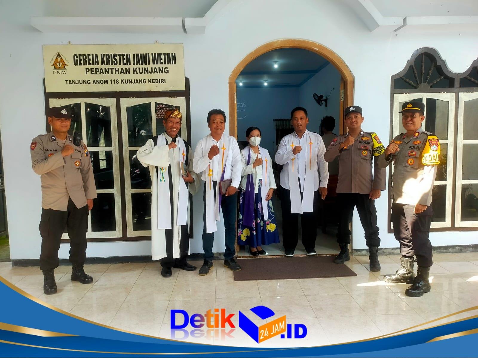 Pengamanan personel Polsek jajaran di wilayah binaan masing-masing, serta didukung patroli preventif dari Sat Samapta Polres Kediri. Kehadiran petugas terlihat sejak sebelum ibadah dimulai hingga kegiatan selesai, termasuk melakukan sterilisasi area gereja dan pengaturan di sekitar lokasi.