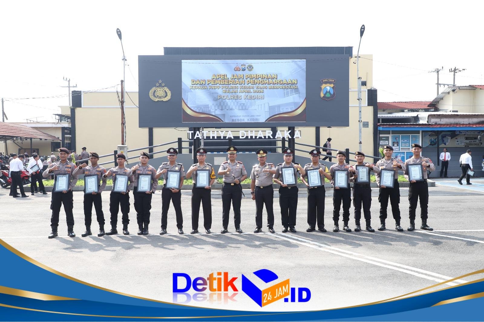 Kediri || Detik24jam.id – Apel jam pimpinan di lingkungan Polres Kediri, Senin (6/4/2026), diwarnai pemberian penghargaan kepada personel berprestasi sebagai bentuk apresiasi atas dedikasi dan kinerja dalam pelaksanaan tugas.
