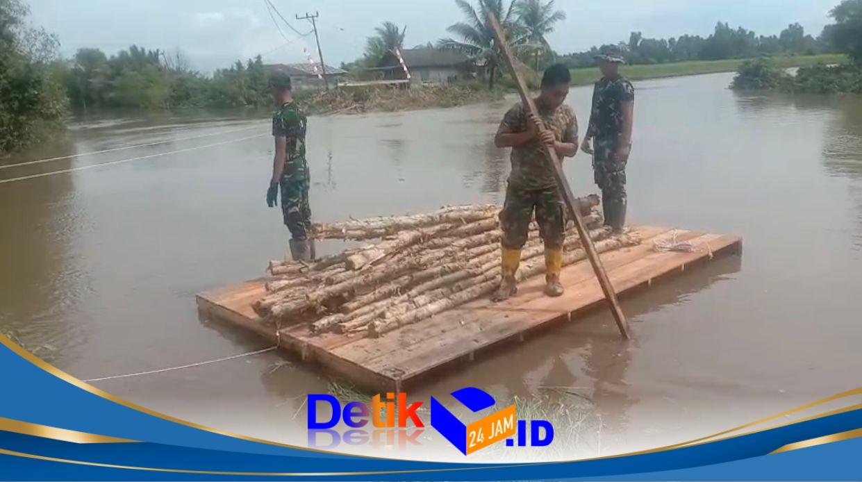 Tanah Laut – Semangat dan dedikasi tinggi terus ditunjukkan oleh personel Kodim 1009/Tanah Laut dalam mendukung percepatan pembangunan Jembatan Garuda di Desa Handil Labuan Amas. Dengan memanfaatkan rakit sederhana yang sebelumnya telah dibuat, para prajurit berjibaku mengangkut material pembangunan melintasi medan perairan yang sulit dijangkau, Selasa (14/04/2026).