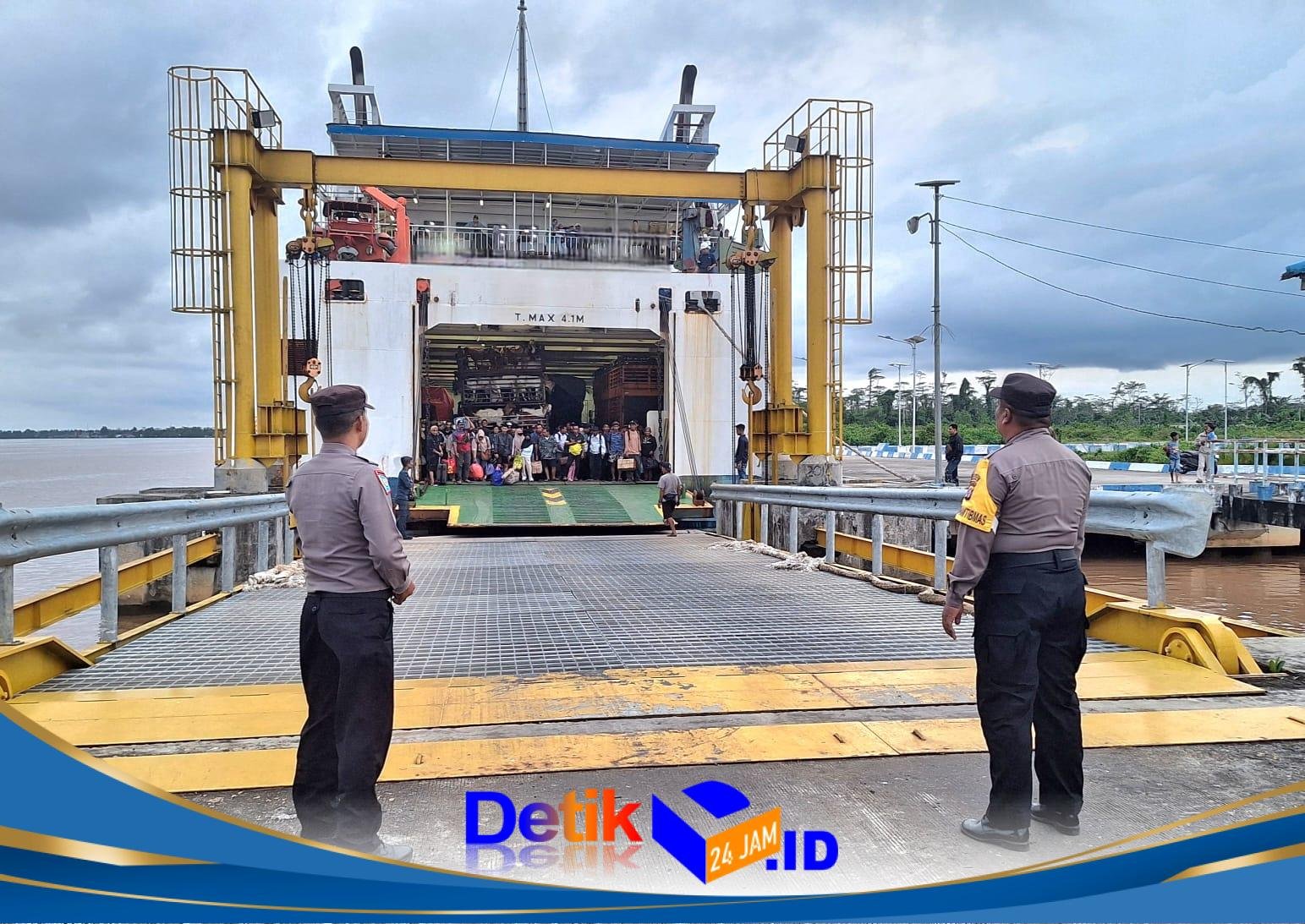 Pulang Pisau – Personel Polsek Kahayan Kuala melakukan pengamanan ketat terhadap kedatangan Kapal Motor Penyeberangan (KMP) Drajat Paciran di Pelabuhan Bahaur, Kecamatan Kahayan Kuala, Kabupaten Pulang Pisau, Senin (20/04/2026) siang.