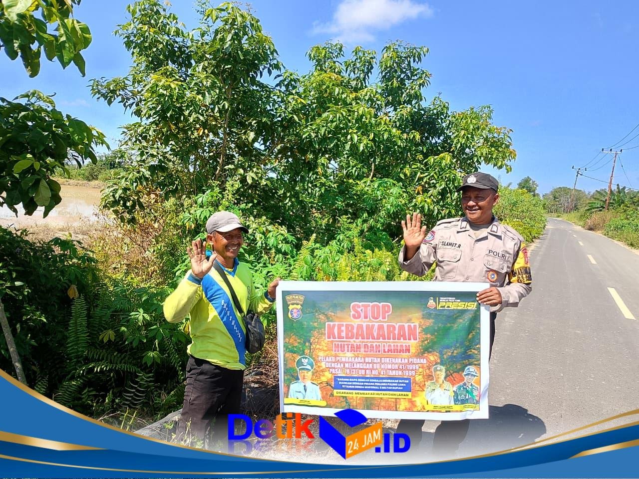 Personel Polsek Pandih Batu, Bripka Slamet Rianto, menyambangi warga di Desa Dandang, Kecamatan Pandih Batu. Dalam kesempatan tersebut, ia memberikan edukasi langsung mengenai bahaya serta sanksi hukum bagi pelaku pembakaran hutan dan lahan.