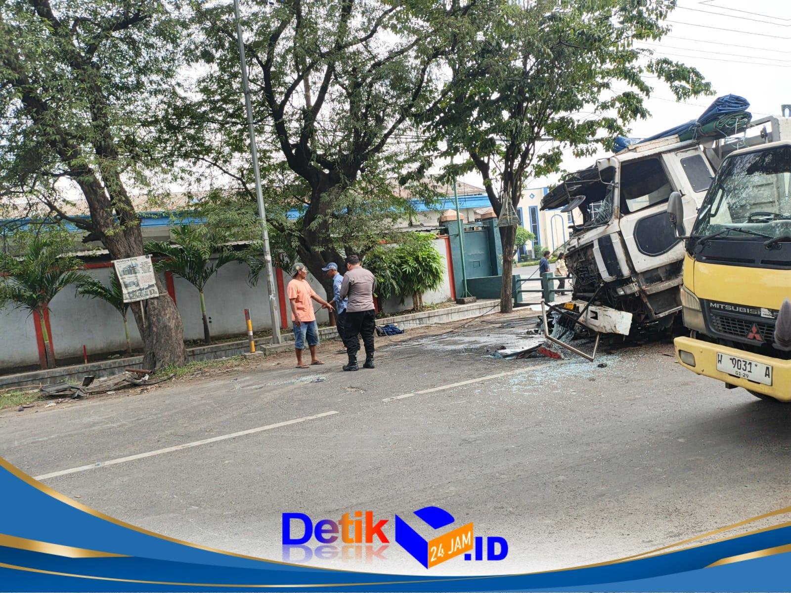 GRESIK || Detik24jam.id — Kecelakaan lalu lintas melibatkan dua kendaraan truk terjadi di Jalan Raya Desa Sumengko, Kecamatan Wringinanom, Kabupaten Gresik, pada Senin (27/4/2026) sekitar6 pukul 14.00 WIB.