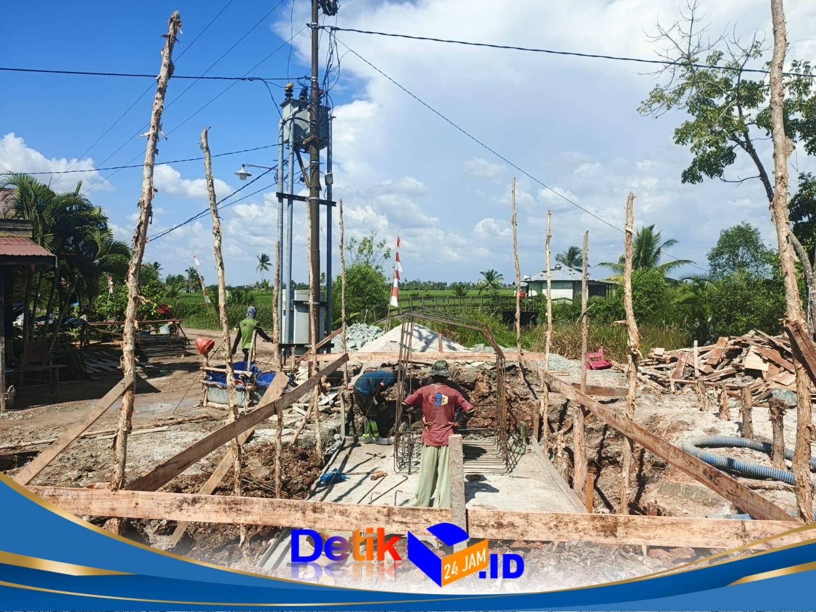 Tanah Laut – Pengerjaan pembangunan Jembatan Garuda di Desa Handil Labuan Amas hingga kini masih terus berlanjut. Meski demikian, proses pengecoran angkur box pada bagian tepi dekat jembatan masih belum rampung dan tetap dikebut oleh personel Kodim 1009/Tanah Laut di lapangan, Kamis (30/04/2026).