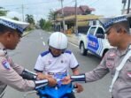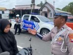 Polres Pulang Pisau – Satuan Lalu Lintas – Anggota Satuan Lalu Lintas (Satlantas) Polres Pulang Pisau memberikan peringatkan kepada pengendara motor yang