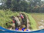 Bersihkan Saluran Irigasi Sawah, Sertu Yudha Gotong Royong Bersama Warga Desa Ngreco